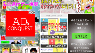 広告避けゲームアプリ「ADs CONQUEST」に「オカオカハウス」が広告として掲載されています。